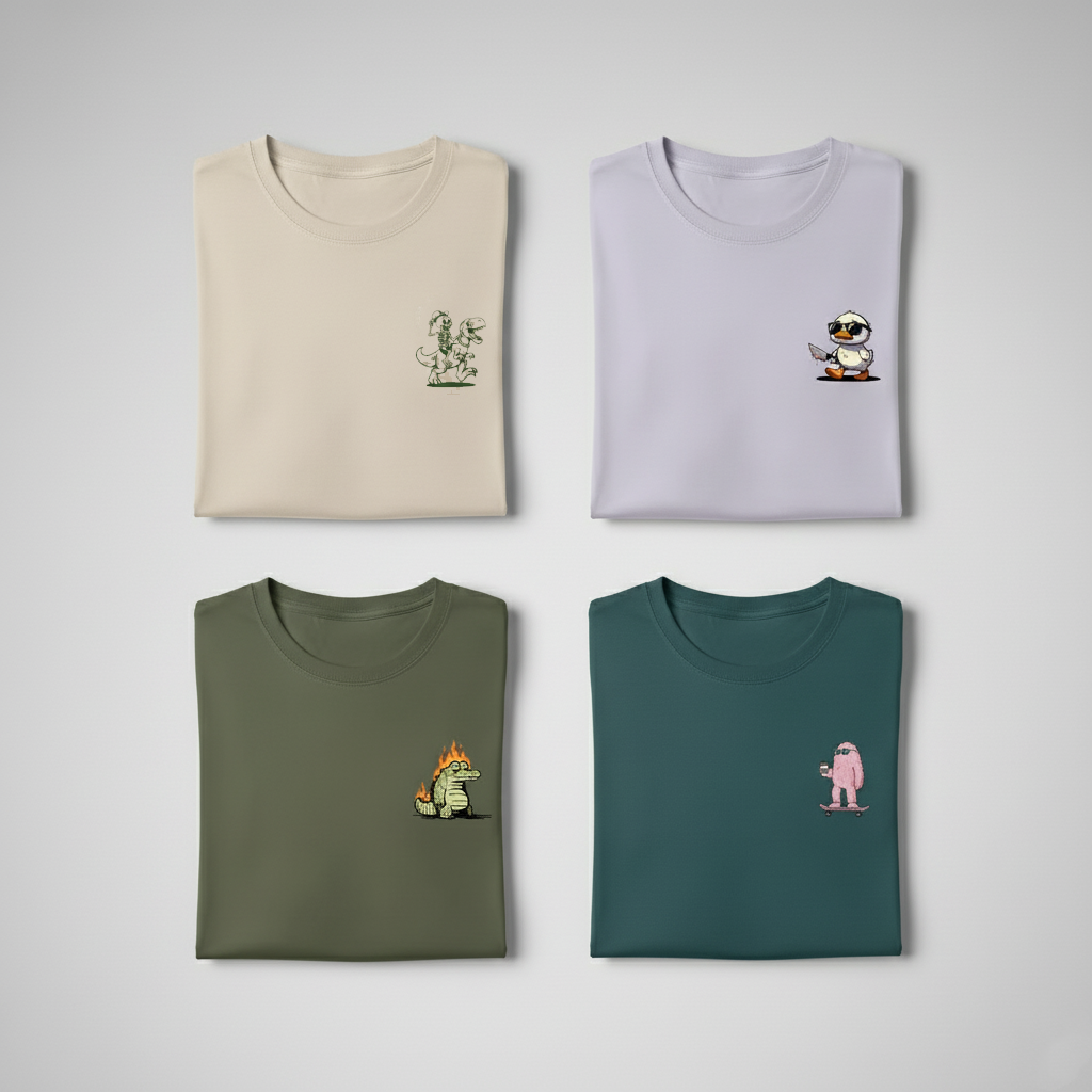 Esta serie combina la actitud urbana con un toque de humor irreverente, destacando ilustraciones únicas en la espalda y un detalle discreto en el pecho.